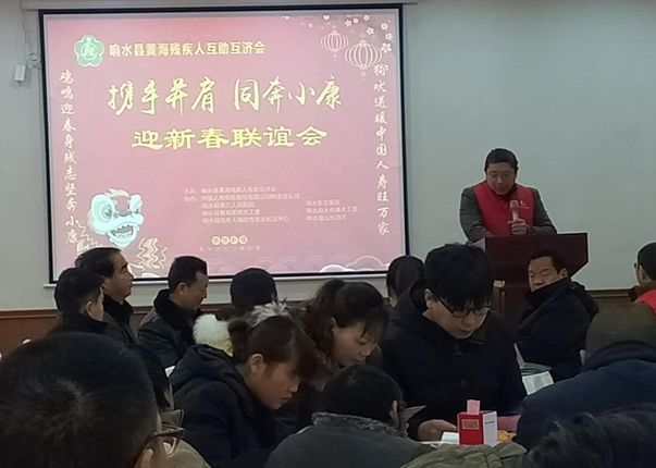 2月7日,“攜手并肩 同奔小康---迎新春聯(lián)誼會(huì)”,在響水縣金山大酒店隆重舉行,響水縣黃海殘疾人互助互濟(jì)會(huì)會(huì)長(zhǎng)何顏軍致歡迎詞,縣殘聯(lián)張副理事長(zhǎng)發(fā)表講話,關(guān)工委潘副秘書長(zhǎng)、民政局薛科長(zhǎng)等部門領(lǐng)導(dǎo)參加會(huì)議,中國(guó)人壽保險(xiǎn)公司響水縣支公司、響水第三人民醫(yī)院、東方醫(yī)院等贊助單位代表到場(chǎng)祝賀,縣電視臺(tái)從頭到尾跟蹤采訪報(bào)道。