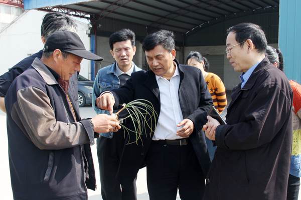 原成剛一行先后參觀了有機(jī)農(nóng)莊陳列室、西瓜、甜瓜、櫻桃番茄種植大棚、中山杉育苗基地、火龍果種植基地、富源養(yǎng)殖合作社、西紅花種植合作社。原成剛在田間地頭、養(yǎng)殖舍與農(nóng)場職工親切交談,詳細(xì)了解農(nóng)場現(xiàn)代農(nóng)業(yè)生產(chǎn)、生態(tài)養(yǎng)殖、職工收入、五金一險交納情況。