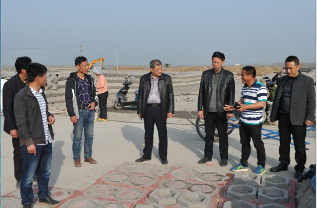 5點15分,當李衛東一行驅車來到農場神禾路旁的一支渠駁岸現場時,橋頭旁的10多名工人正在用水泥澆鑄駁岸碼頭和流水口。李衛東一行走到河旁查看和了解了水泥駁岸的生產進度和質量情況,并對隨行人員就農場下一步河長治的規劃和美麗淮海的建設情況,進行了探討。