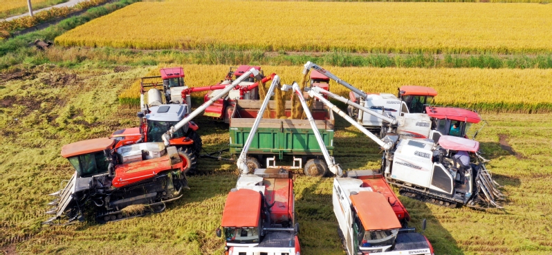 10月25日,蘇墾農(nóng)發(fā)江心沙分公司搶抓晴好天氣,組織收割機集中開展大規(guī)模水稻收割作業(yè),切實將“豐收在望”轉(zhuǎn)化為“豐收到手”,彰顯農(nóng)業(yè)“國家隊”擔當。收割現(xiàn)場,收割機、運糧車來來往往,一片繁忙景象。