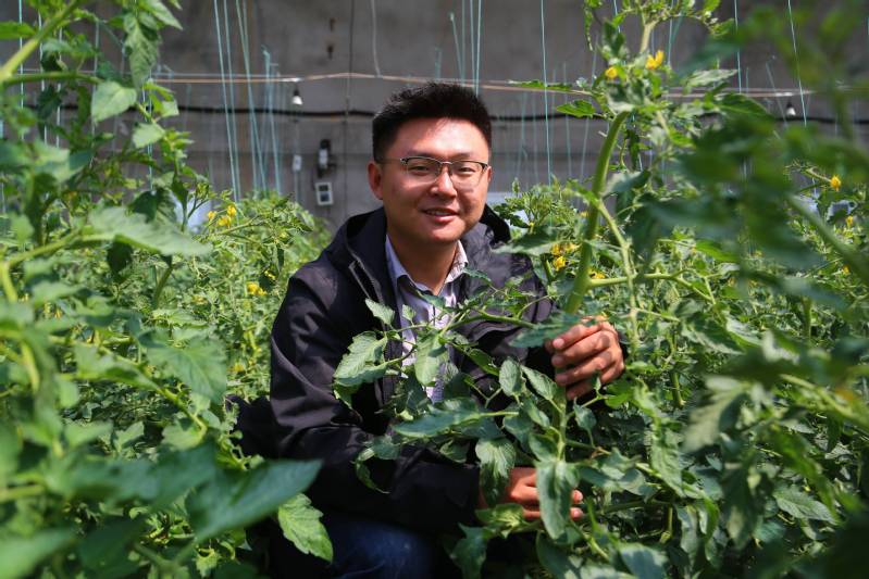 王斯達,1995年出生,是崗埠農(nóng)場高效農(nóng)業(yè)示范園的工作人員,土生土長的農(nóng)場人。研究生畢業(yè)后,他應(yīng)聘回到家鄉(xiāng),投身高效設(shè)施農(nóng)業(yè)發(fā)展中來。在園區(qū),他積極認真工作,邊學(xué)邊干,很快掌握百合花、菊花等種植技術(shù)和西紅柿、水果黃瓜的管理方式。他每天穿梭在農(nóng)場的溫室大棚里,參與西紅柿品種篩選、種植工作,每天趴在大棚里記錄西紅柿生長情況,觀察長勢、土壤水分、pH值等,給各類作物拍攝視頻照片并記錄在農(nóng)場的美好生活。