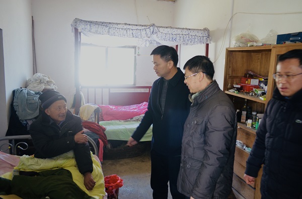 2月7日上午,集團公司紀委書記章朝陽一行到濱淮農場走訪慰問困難職工,農場黨委成員李德利、傅龍光、馬傳武陪同?! £惼际菫I淮農場四分場退休職工,兒子因車禍去世,后兒媳又離開了這個家庭,女兒也因婚姻問