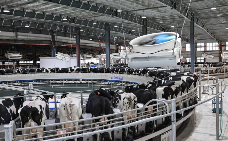 AI攝像頭、溫濕度傳感器、智能項圈、電子耳標(biāo)……人工智能、物聯(lián)網(wǎng)、大數(shù)據(jù)系統(tǒng)集成聯(lián)動,一臺臺自動化設(shè)備在存欄8300余頭奶牛的牧場內(nèi)高效運轉(zhuǎn)。這是蘇墾優(yōu)然牧業(yè)生態(tài)智慧牧場內(nèi)的一幕,也是江蘇農(nóng)墾推進智慧農(nóng)業(yè)發(fā)展,實現(xiàn)農(nóng)業(yè)生產(chǎn)數(shù)字化的典型場景。大數(shù)據(jù)管理平臺將牧場繁殖、疾病、轉(zhuǎn)群、防疫、營養(yǎng)、DHI、成本等生產(chǎn)數(shù)據(jù)收集匯總,實現(xiàn)生產(chǎn)管理數(shù)字化、流程化、智能化,大幅提高了鮮奶的產(chǎn)量和質(zhì)量,鮮奶質(zhì)量優(yōu)于歐盟標(biāo)準(zhǔn),牧場成功入選2022年智慧江蘇重點工程。蘇墾優(yōu)然智慧牧場建設(shè)主要分為數(shù)字化信息綜合平臺、牧場智能化設(shè)備、實時監(jiān)控、無線網(wǎng)絡(luò)覆蓋及數(shù)據(jù)中心。無線網(wǎng)絡(luò)覆蓋為監(jiān)控設(shè)備與智能化硬件設(shè)備提供網(wǎng)絡(luò)服務(wù),實現(xiàn)牧場智能化設(shè)備數(shù)據(jù)的實時上傳和監(jiān)控設(shè)備實時監(jiān)控。大數(shù)據(jù)駕駛艙共分為17個模塊,展示牧場位置及牧場總體概況數(shù)據(jù),包括牧場實時存欄、生態(tài)環(huán)保、飼養(yǎng)分級、圈舍分布、通知咨詢等。物聯(lián)網(wǎng)賦能提質(zhì)添智。在蘇墾優(yōu)然牧場,飼養(yǎng)員每天早上都會打開手機,“智慧養(yǎng)殖系統(tǒng)相當(dāng)于給每頭奶牛頒發(fā)了可自動采集數(shù)據(jù)的電子身份證,個體牛只基本檔案一牛一碼、一目了然,查看奶牛身體狀況更加方便了。”原來還要為牛舍的事進進出出,現(xiàn)在只