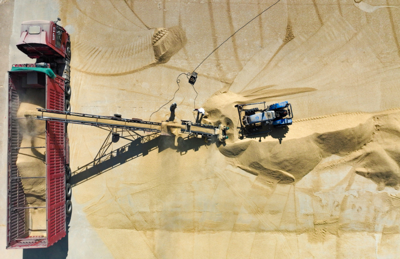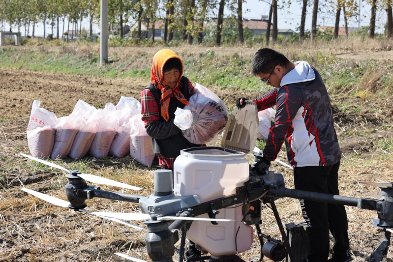 今年“三秋”工作中,蘇墾農發復興圩分公司積極推廣和應用新型農機具,利用無人機“飛播”的方式助力秋播生產,為秋季農業生產插上科技的“翅膀”,全力打好“三秋”生產下半場。近日,在復興圩分公司農業生產三大隊7號地里,操作人員配合無人機手熟練地將小麥種子倒入無人機播撒箱內,一臺裝有導航系統的大疆T50無人機緩緩升空,按照設定的路線勻速飛行,小麥種子隨著高速氣流噴灑而出,均勻地播撒在土地里?!拔覀冞@幾天撒肥、播種,全部使用無人機作業,一臺無人機每天可作業面積接近400畝,與傳統反旋播種作業方式相比,無人機播種不僅省時省力,還能夠精確控制每畝田的用種量,大幅度提高農業生產效率?!比箨犡撠熑讼睦^全介紹說道。在今年的“三秋”工作中,復興圩進一步解放思想,勇于實踐,積極推廣應用一批新型農機具,有效提高了“三秋”各類生產作業質量。科技是現代農業生產高質量發展的重要支撐,為保質保量完成小麥播種工作,實現“提質量、促增收”的目標,復興圩分公司及早謀劃,嚴把小麥播種質量關,積極推廣無人機“飛播”技術,搶抓農時及時播種,用現代農業科技促進糧食穩產增產,守護“糧食安全”。